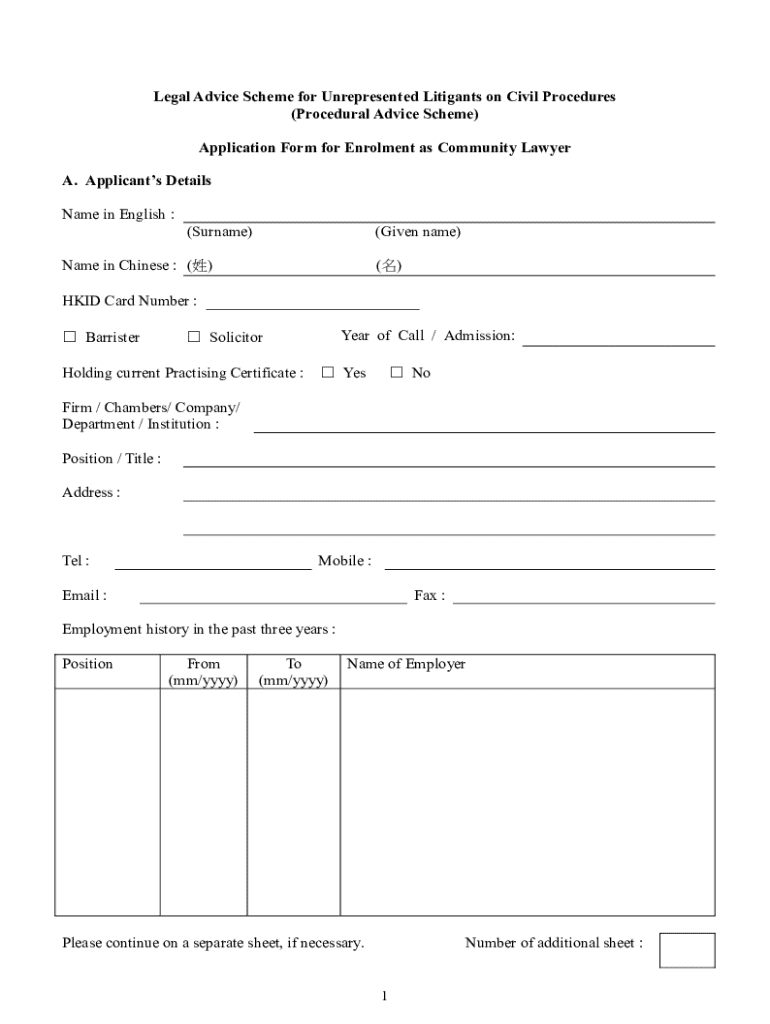 Get the free Application Form for Enrolment as Community Lawyer