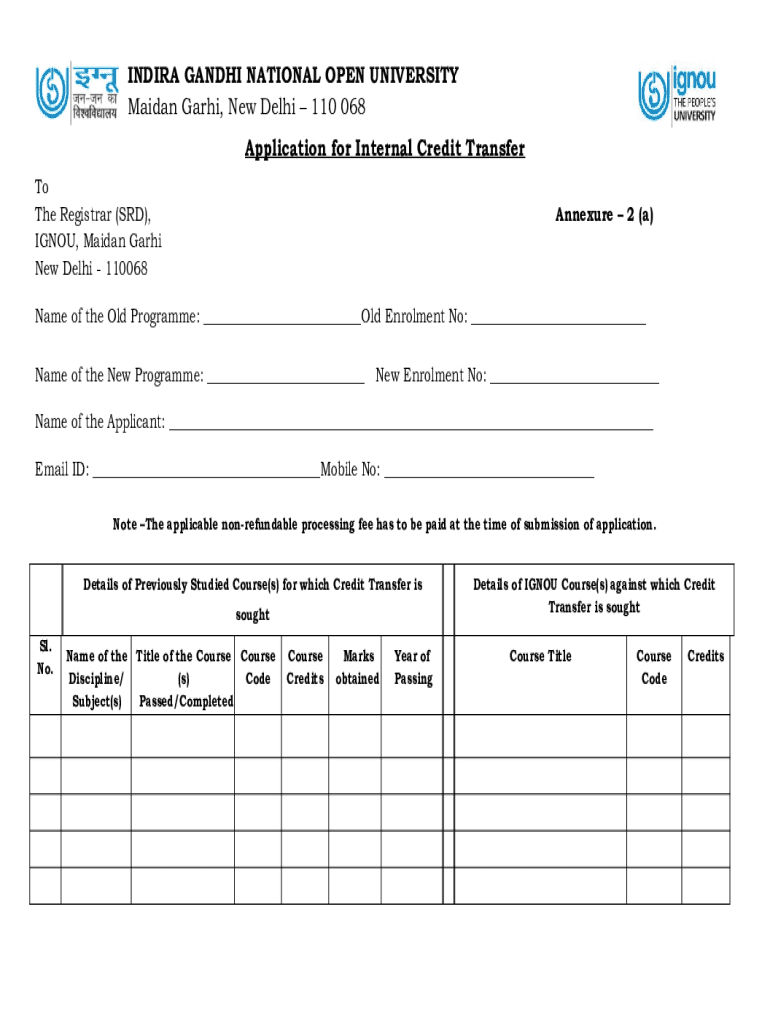 Get the free Application for Internal Credit Transfer and Application for External Credit Transfe...