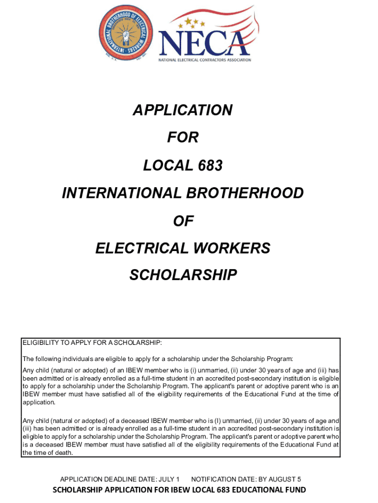 Get the free Application for Local 683 International Brotherhood of Electrical Workers Scholarship