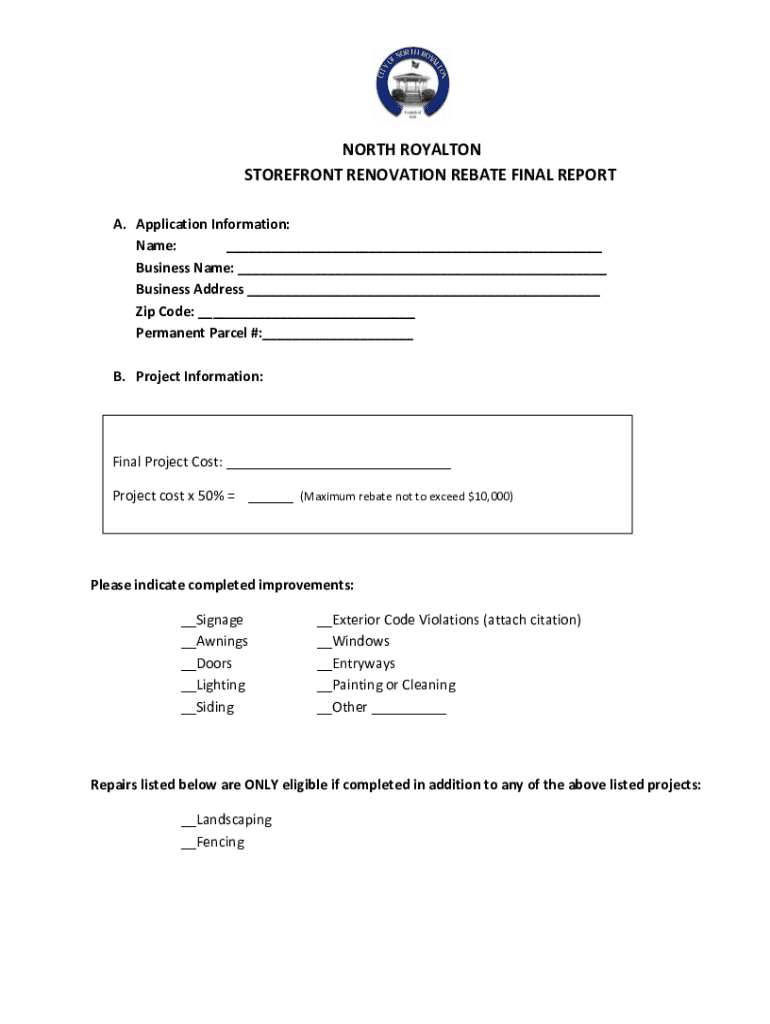 Get the free North Royalton Storefront Renovation Rebate Final Report