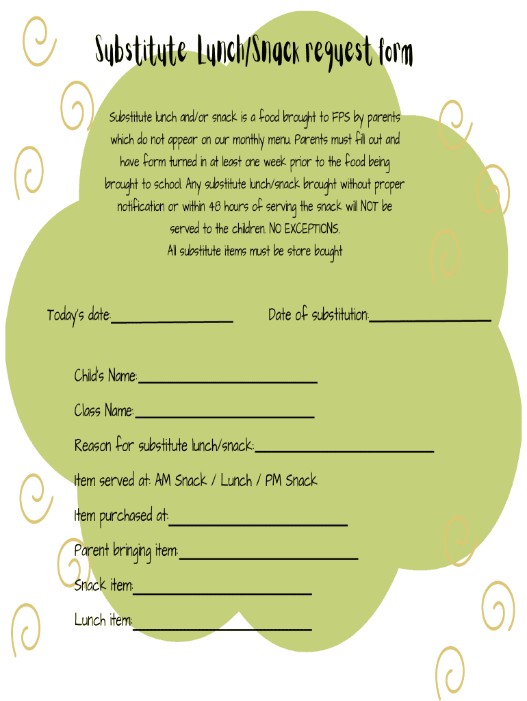 Get, Create, Make and Sign substitute lunchsnack request form