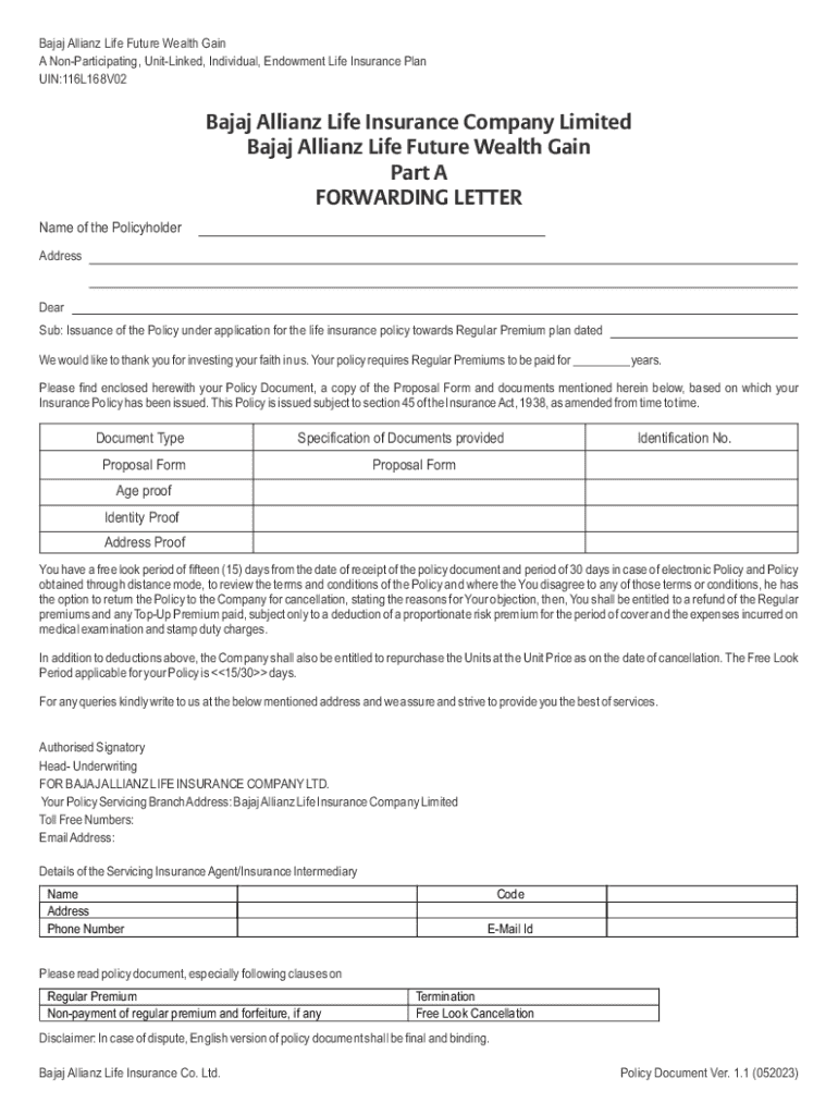 The Bajaj Allianz Life Future Form is a critical document designed for individuals looking to secure their financial future through life insurance. This form serves as an essential step in the application process for various insurance policies offered by Bajaj Allianz, which cater to diverse needs, from family protection to wealth accumulation.