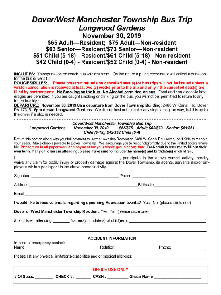 Get the free Dover/west Manchester Township Bus Trip