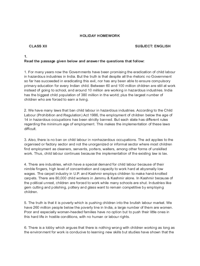 The holiday homework form serves as a structured tool designed to organize and communicate assignments given to students during holiday breaks. Its primary purpose is to facilitate learning continuity, ensuring students remain engaged with their studies even outside the traditional classroom setting. This form is critical as it clearly outlines expectations and guides students in managing their time effectively while balancing leisure activities during holidays.