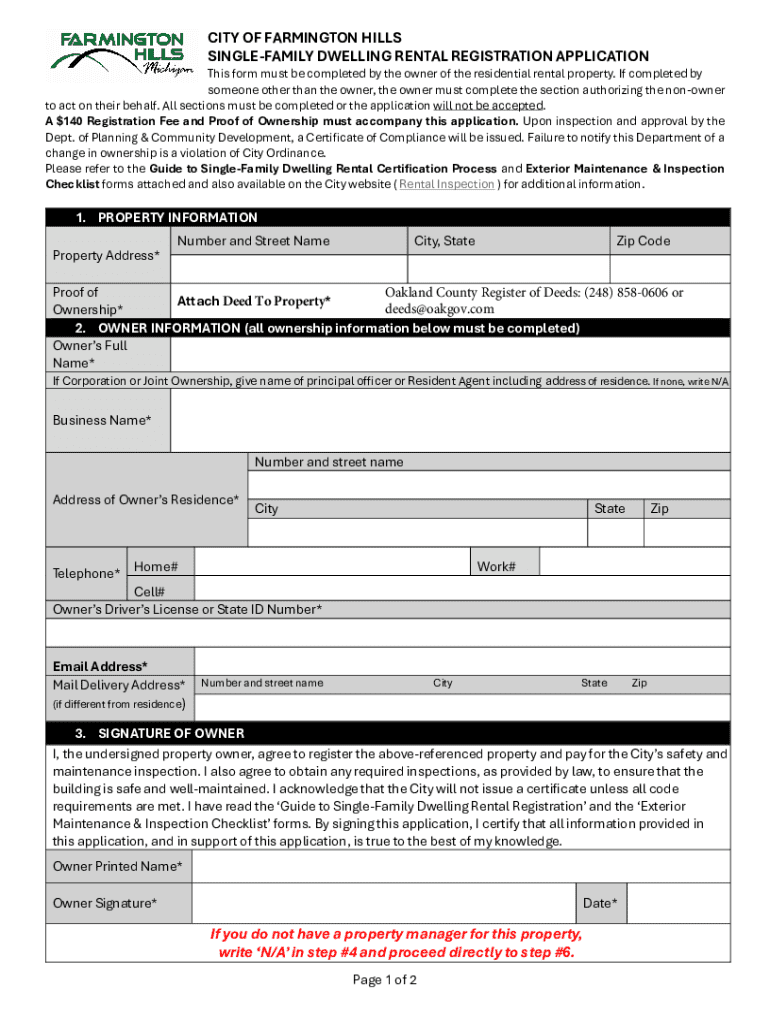 Get the free Single-family Dwelling Rental Registration Application