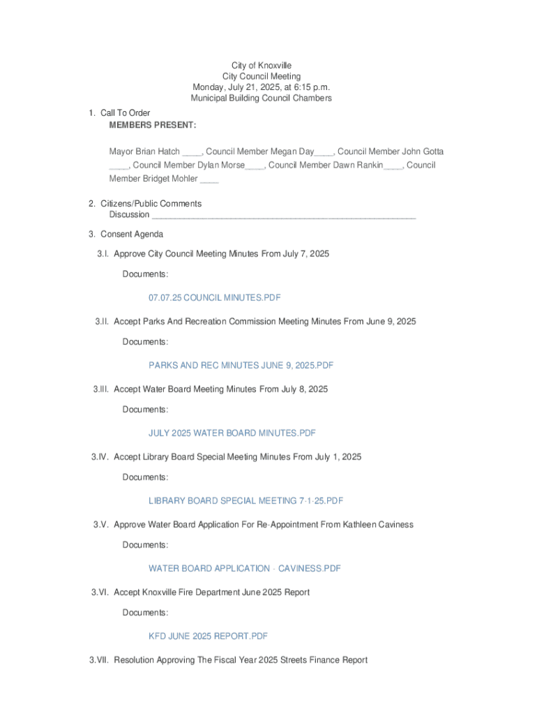 Get the free City Council Meeting Minutes