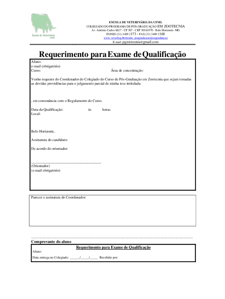 Obtenha o gratuito Requerimento Para Exame De Qualificação - vet ufmg