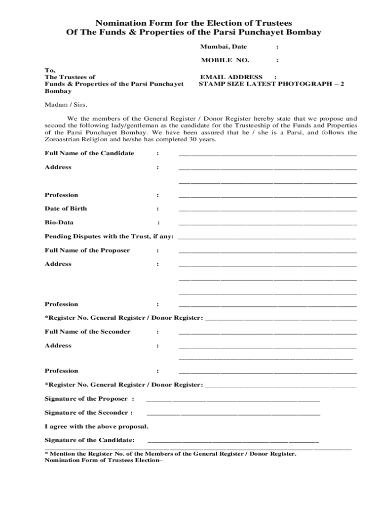 Get the free Nomination Form for the Election of Trustees