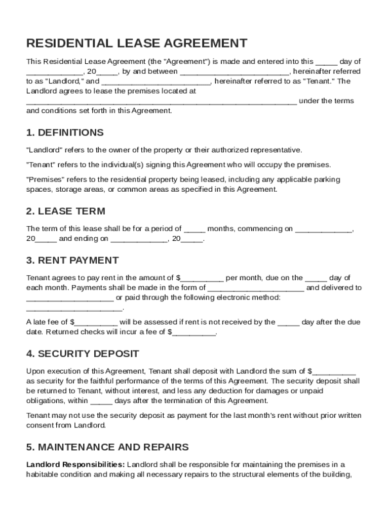This document outlines the terms and conditions of a lease agreement between a landlord and tenant for a residential property.
