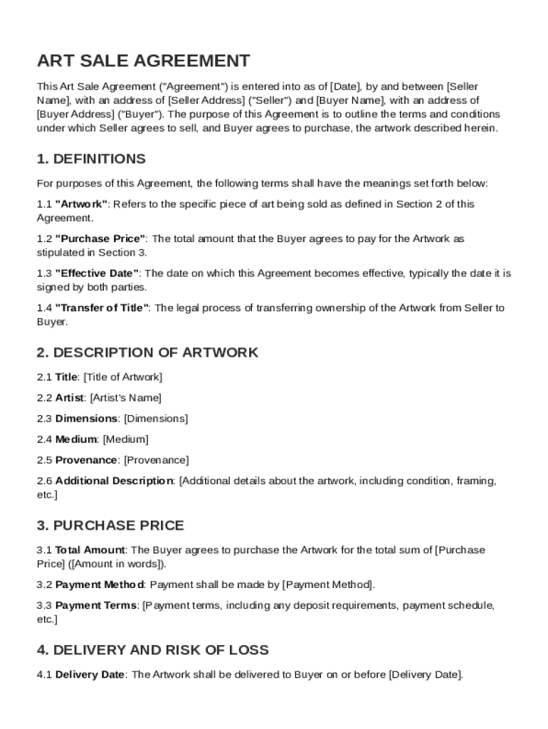 The following key provisions are essential to the Art Sale Agreement Template: