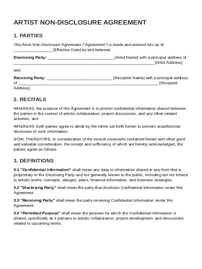Comprehensive Guide to the Artist Non-Disclosure Agreement Template
