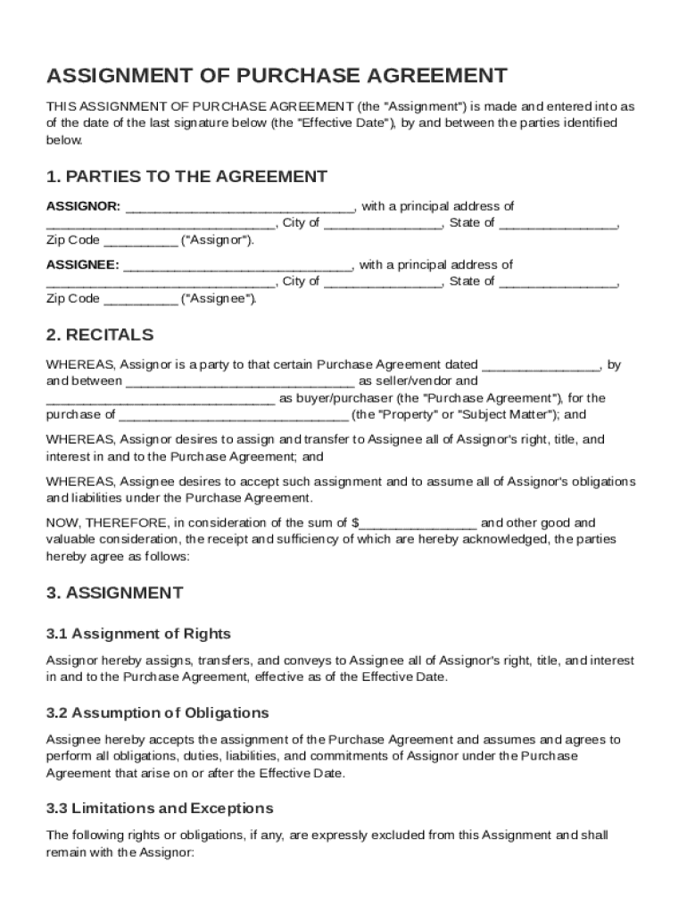 What is Assignment of Purchase Agreement Template