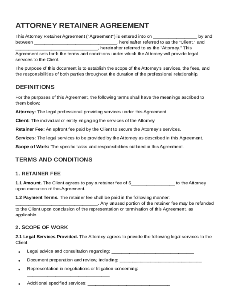 Use the Attorney Retainer Agreement template today for your legal needs.
