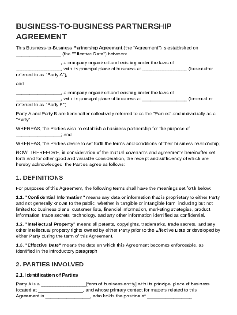A B2B Partnership Agreement Template is a structured document that outlines the terms, responsibilities, and expectations between two businesses engaging in a partnership.