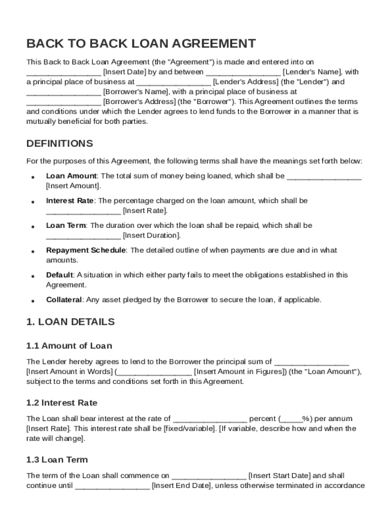 Understanding the legal language of a Back to Back Loan Agreement is crucial to ensure compliance. This ensures that the document upholds both parties’ rights and obligations.