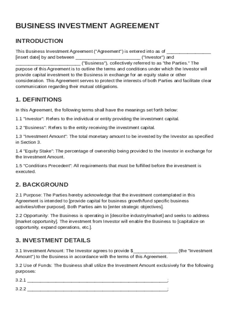 A comprehensive guide to the Business Investment Agreement Template form