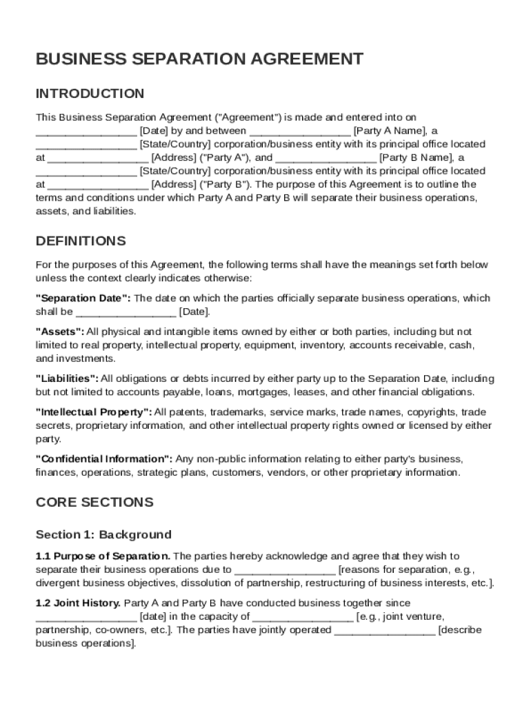 Here is a comprehensive overview of the Business Separation Agreement Template, including its definition, usage, and vital components.