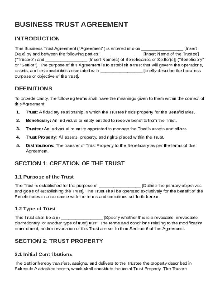 Understanding the main sections of a Business Trust Agreement is crucial for both creators and signers. Key components include: