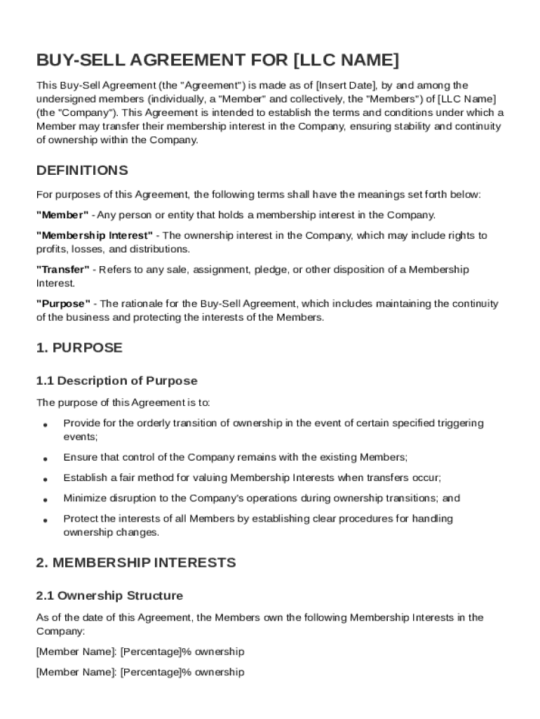 A Buy Sell for LLC Agreement Template is a legal document that outlines the terms for buying and selling membership interests in a Limited Liability Company (LLC).