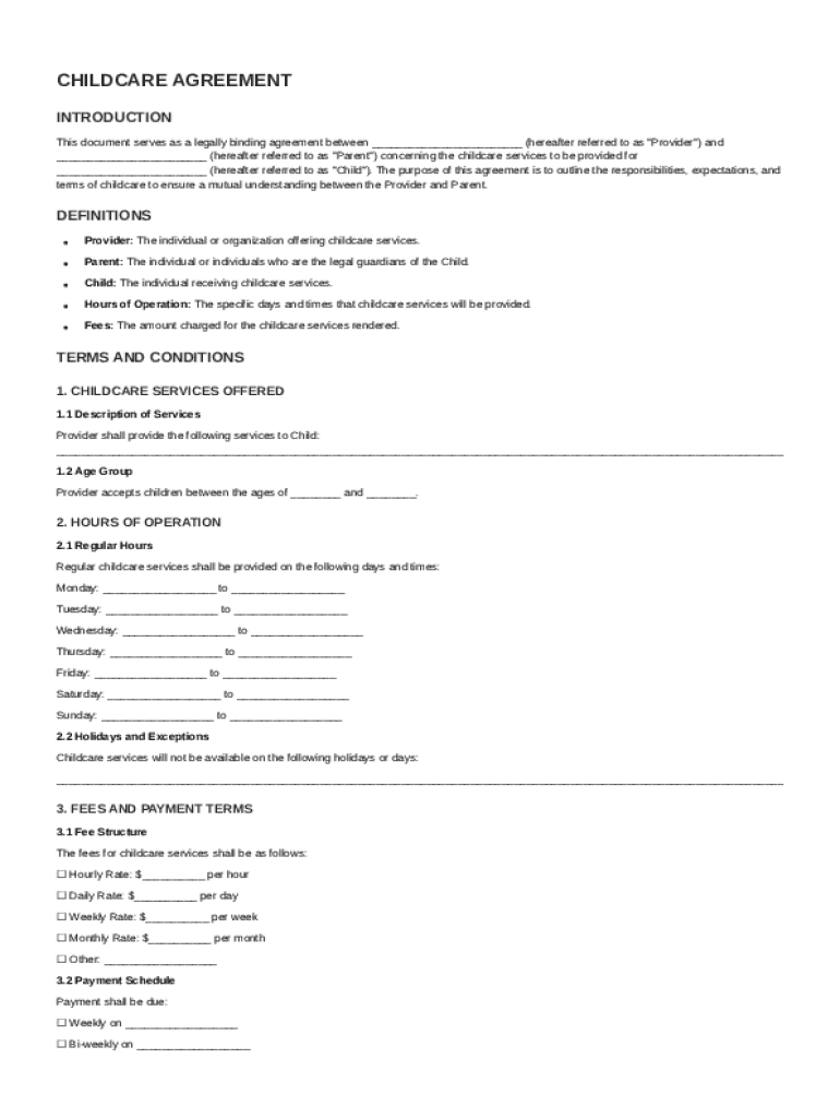 What is Childcare Agreement Template