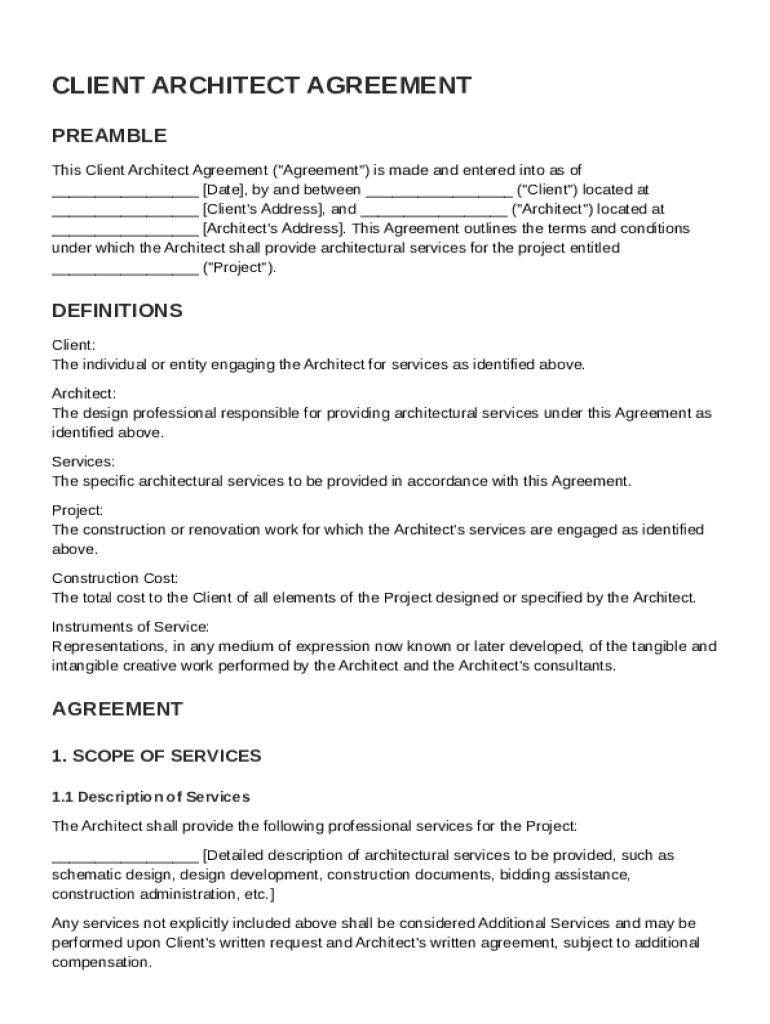 Client Architect Agreement Template Form Guide on pdfFiller