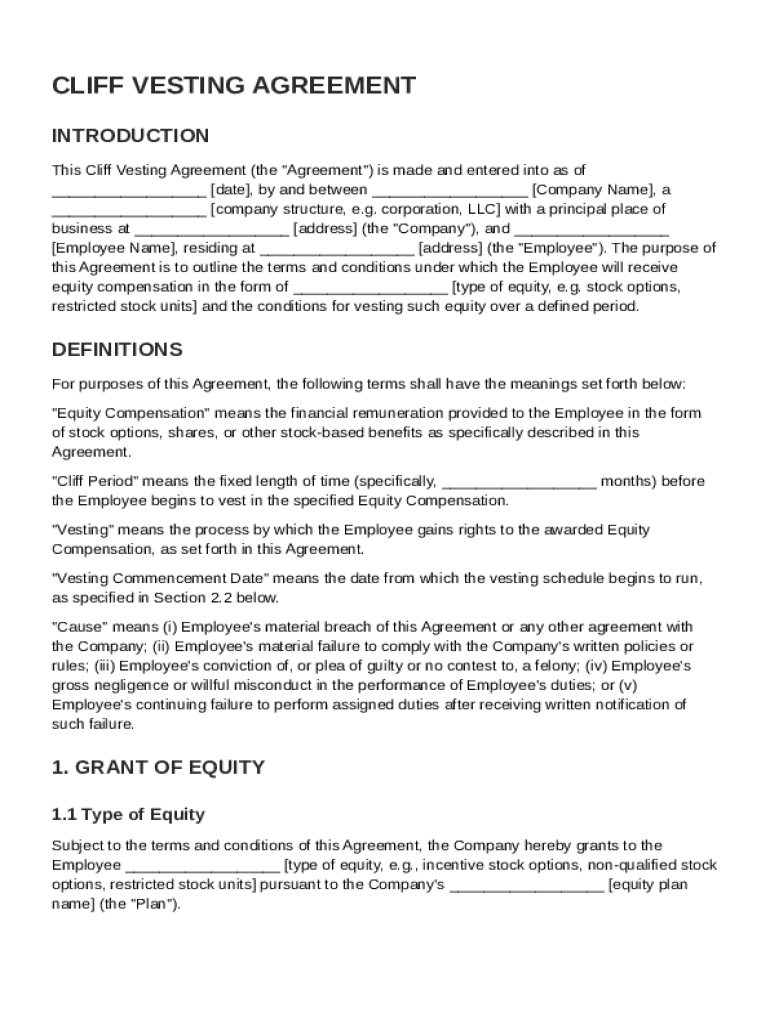 Comprehensive Guide to the Cliff Vesting Agreement Template