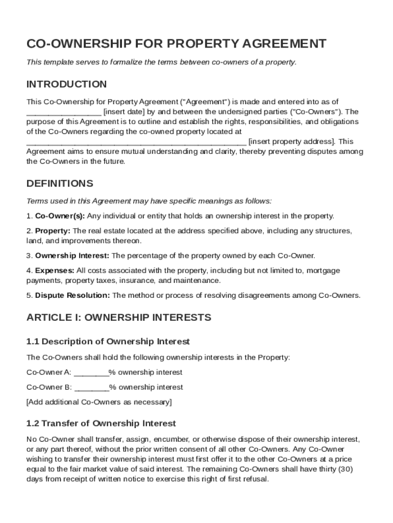 Co Ownership for Property Agreement Template Guide