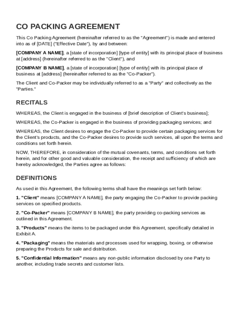 What is Co Packing Agreement Template