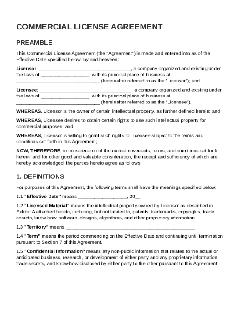 Filling out a Commercial License Agreement Template requires a clear understanding of the roles and responsibilities of the parties involved. This guide will provide step-by-step instructions on how to effectively create and manage a license agreement.