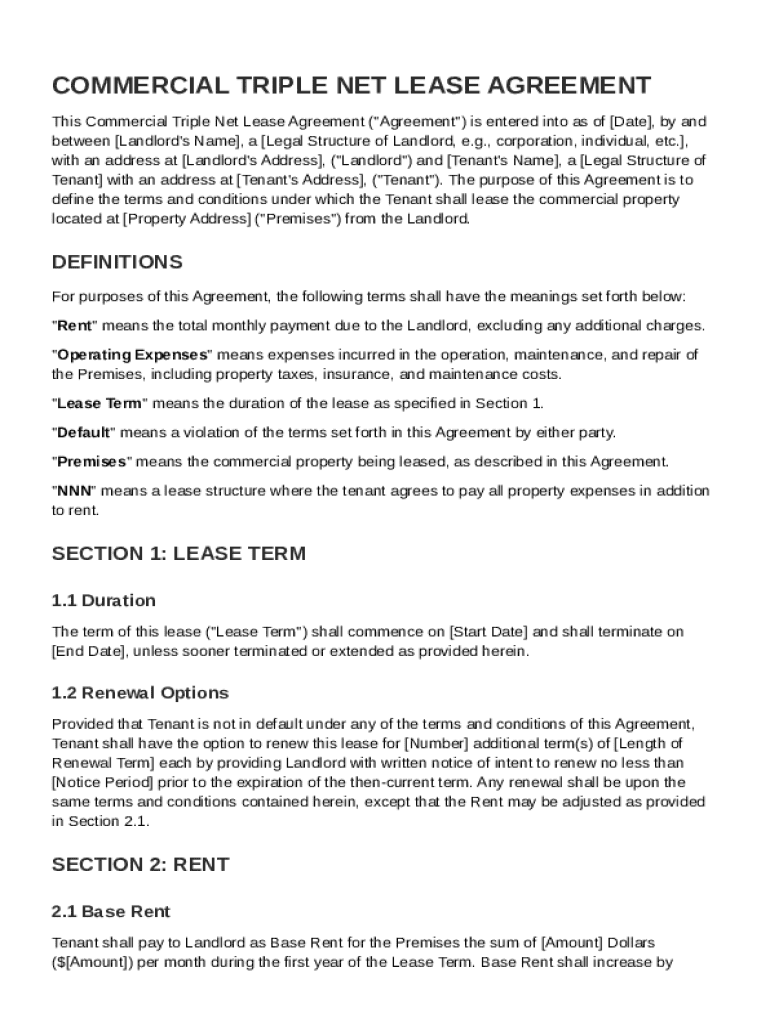 What is Commercial Triple Net Lease Agreement Template