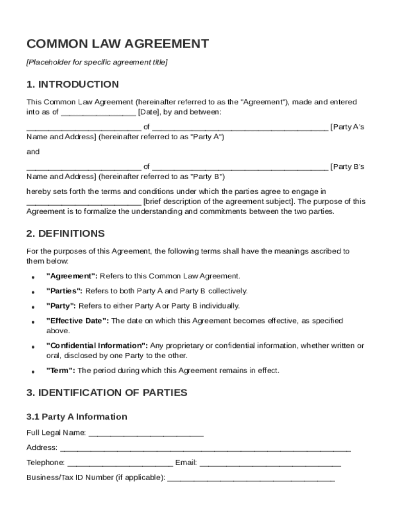 A comprehensive Common Law Agreement should incorporate specific vital elements to ensure clarity and enforceability. Each component contributes to outlining the expectations and responsibilities of both parties.