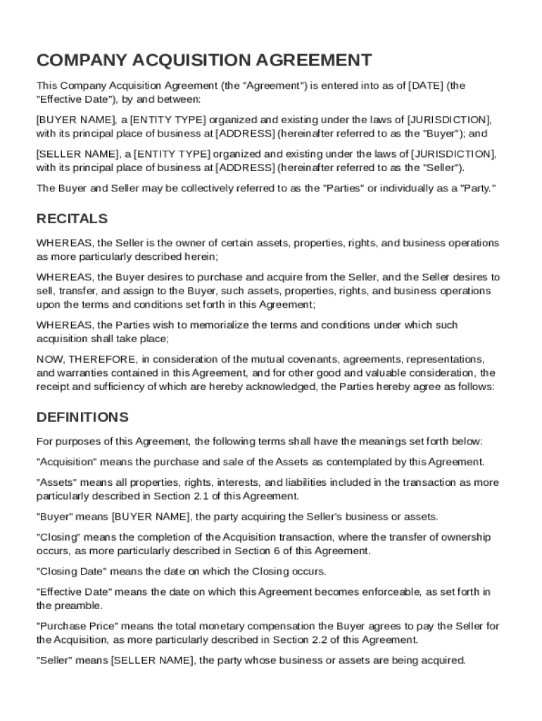 Comprehensive Guide to Company Acquisition Agreement Template on pdfFiller