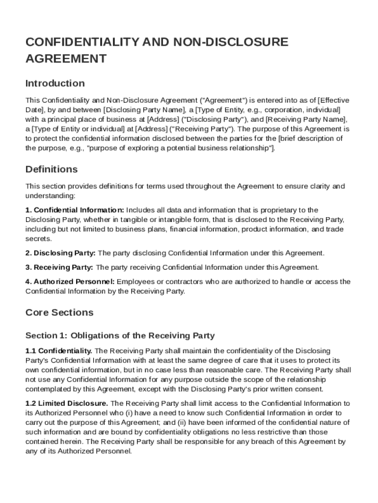 An effective NDA template contains several critical components that clarify the roles and responsibilities of the parties involved. These elements contribute to the overall effectiveness and enforceability of the contract.