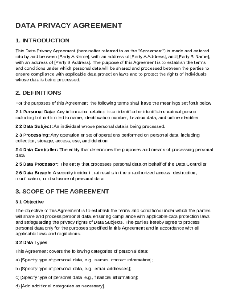 A Data Privacy Agreement Template provides a structured approach to protecting personal information during data sharing. This guide will help you navigate through the essential components and processes, ensuring your agreement fulfills legal requirements and safeguards individuals' rights.