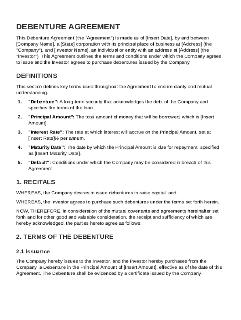 What is Debenture Agreement Template