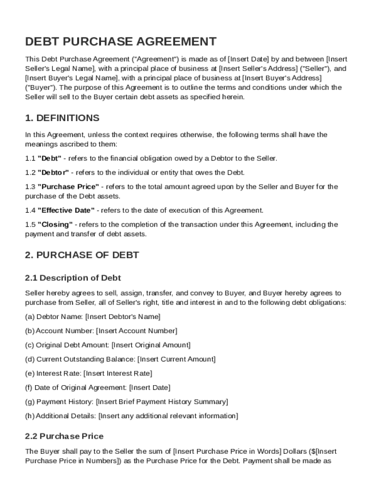 A Comprehensive Guide to the Debt Purchase Agreement Template