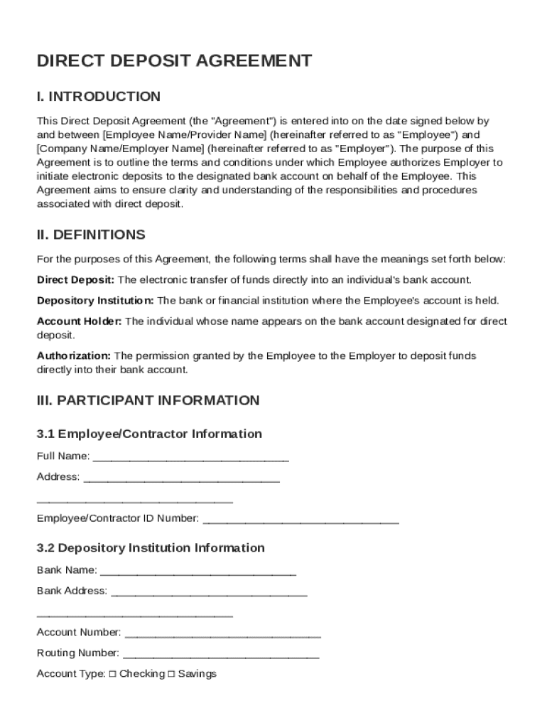 What is Direct Deposit Agreement Template