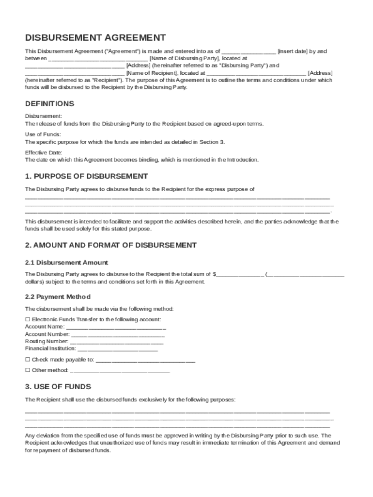 Understanding the key elements of a Disbursement Agreement is crucial for effective document management. Here’s a breakdown of essential provisions: