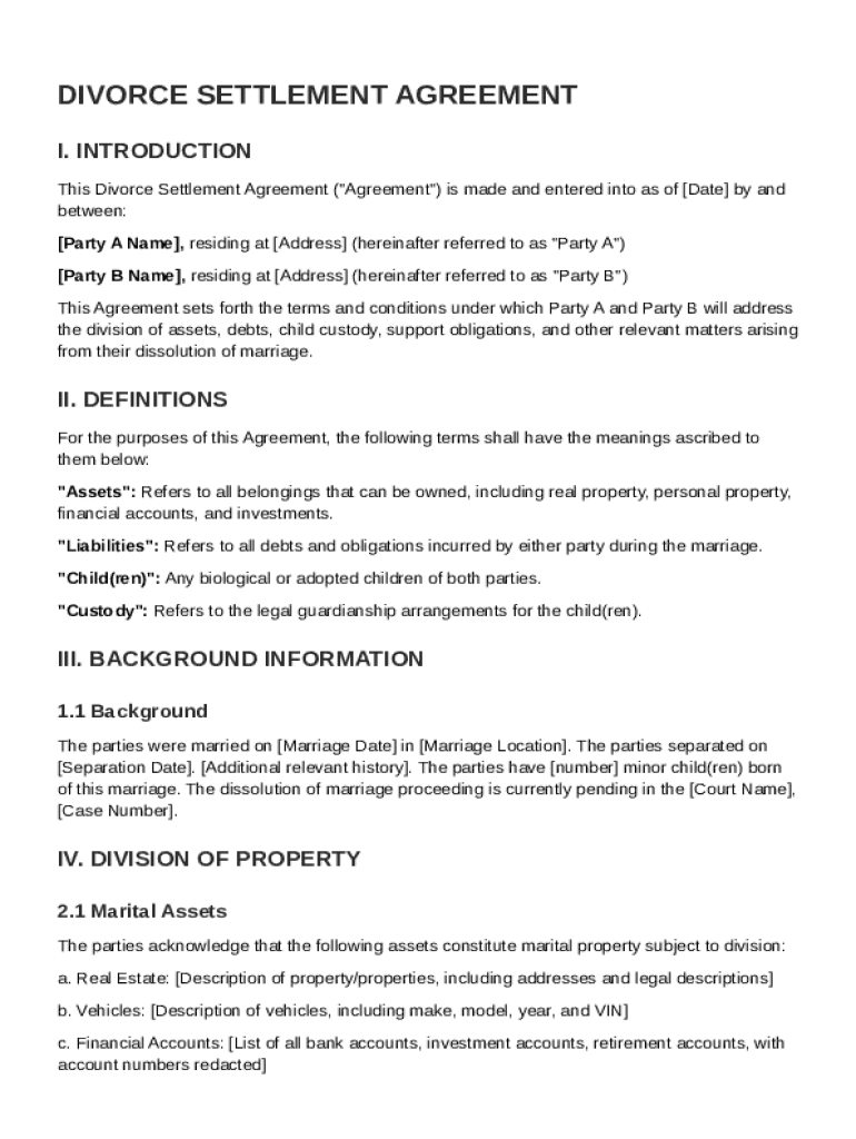 Divorce Settlement Agreement Template Guide