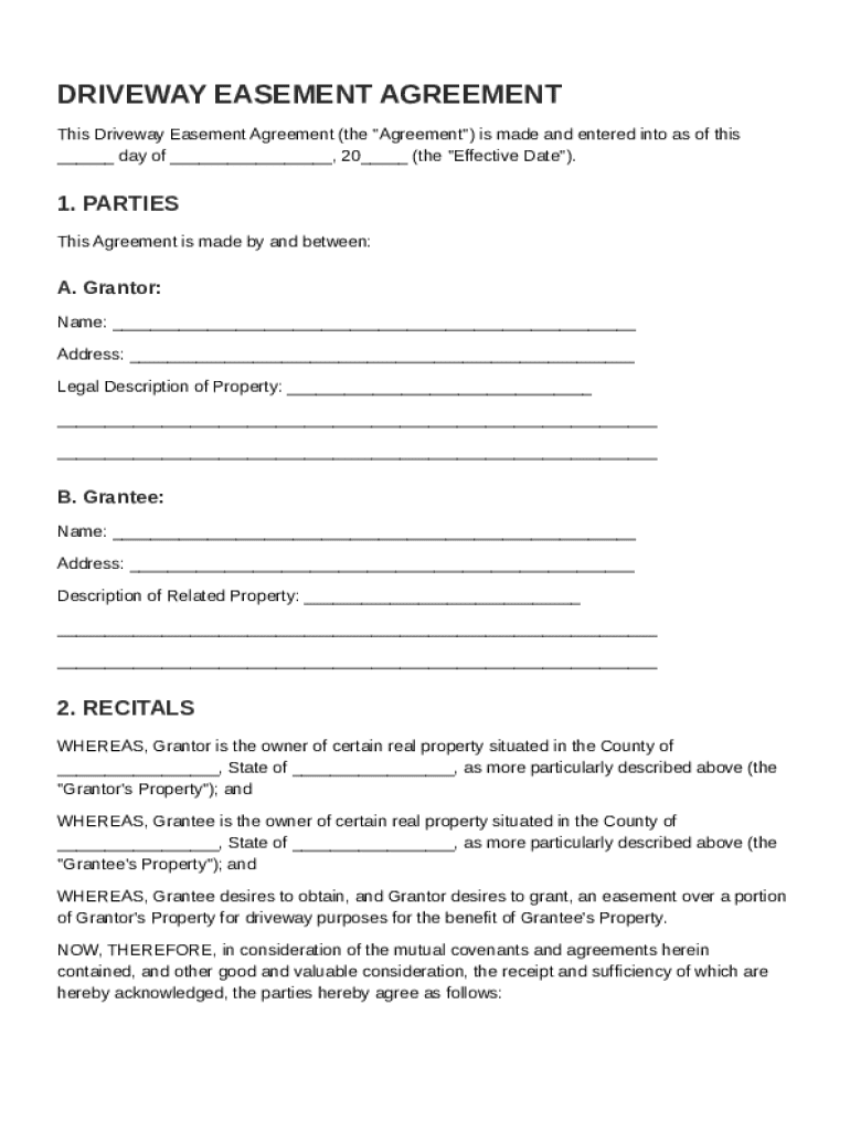 What is Driveway Easement Agreement Template