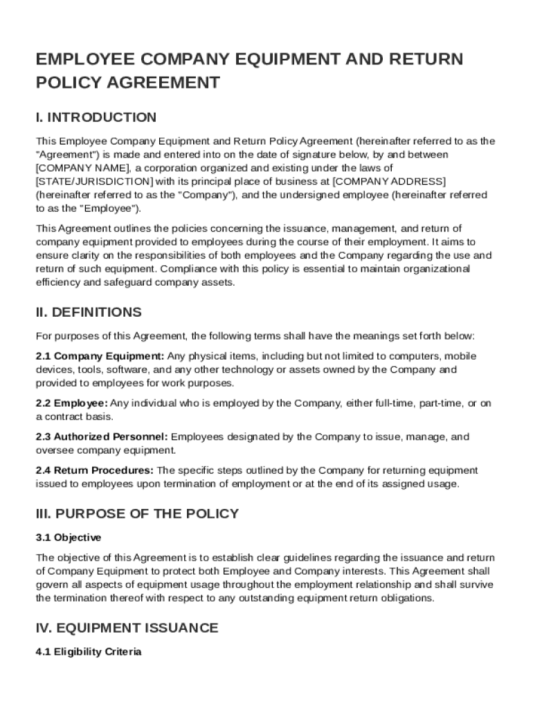 How to fill out the Employee Company Equipment and Return Policy