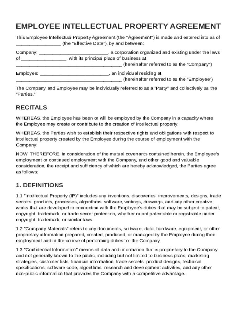 A comprehensive guide to the Employee Intellectual Property Agreement
