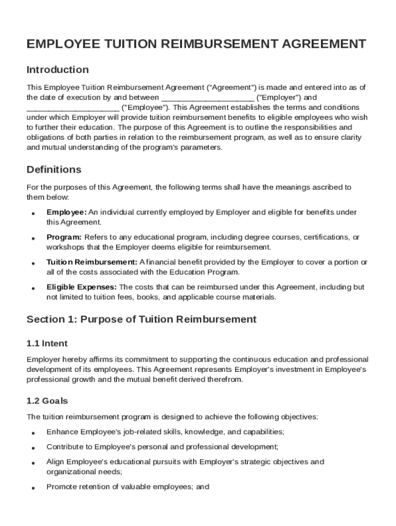 The agreement structure defines the relationship and responsibilities of both parties involved in the tuition reimbursement process. It is essential for clarity and compliance.