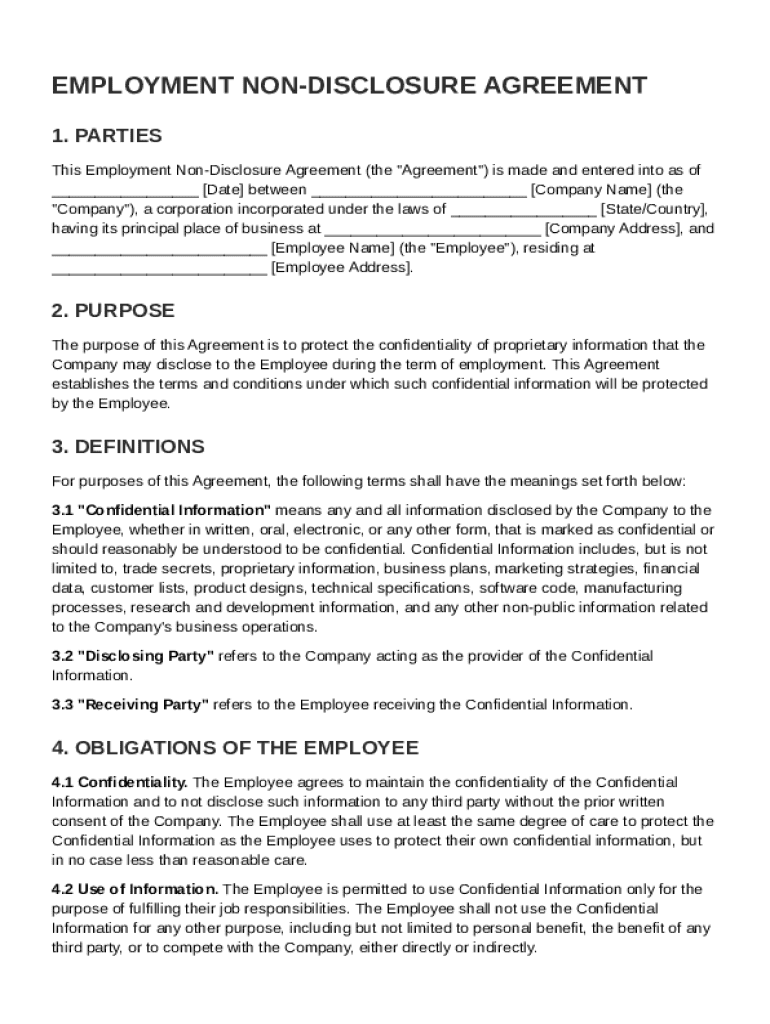 Employment Non-Disclosure Agreement Template Guide