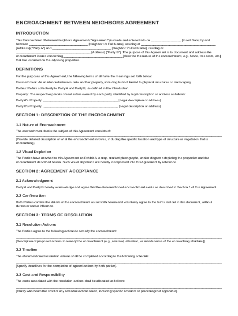 How to fill out the Encroachment Between Neighbors Agreement Template