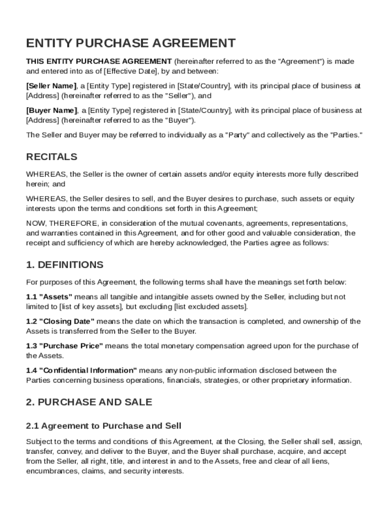 A comprehensive guide to the Entity Purchase Agreement Template form