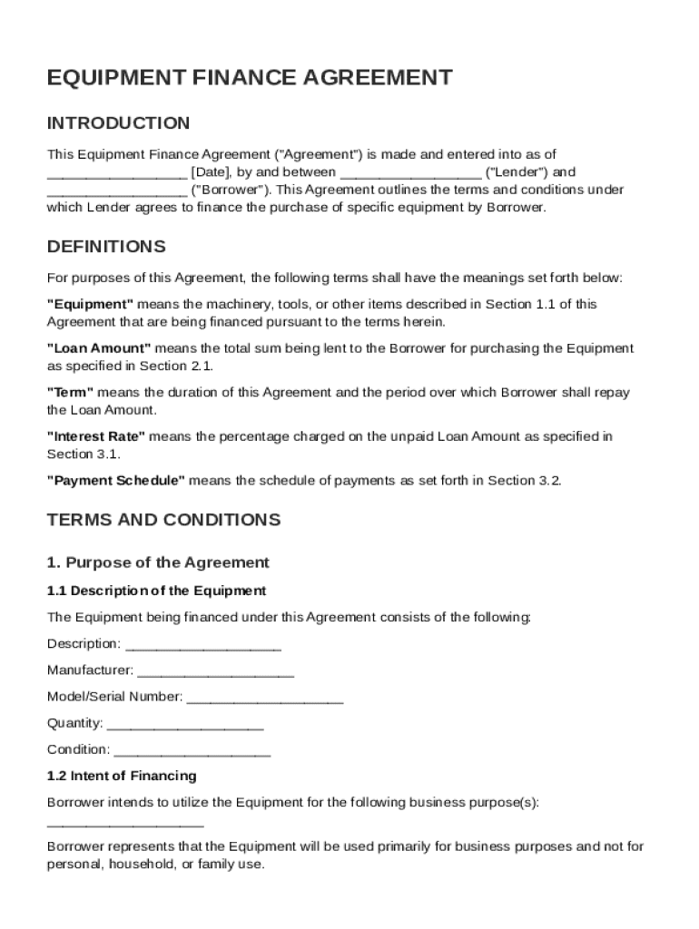 A comprehensive guide to the Equipment Finance Agreement Template form