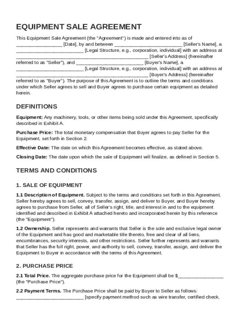 What is Equipment Sale Agreement Template