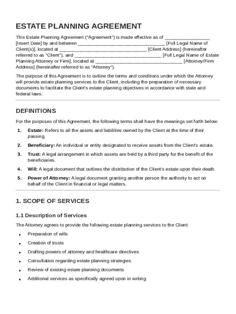 What is Estate Planning Agreement Template