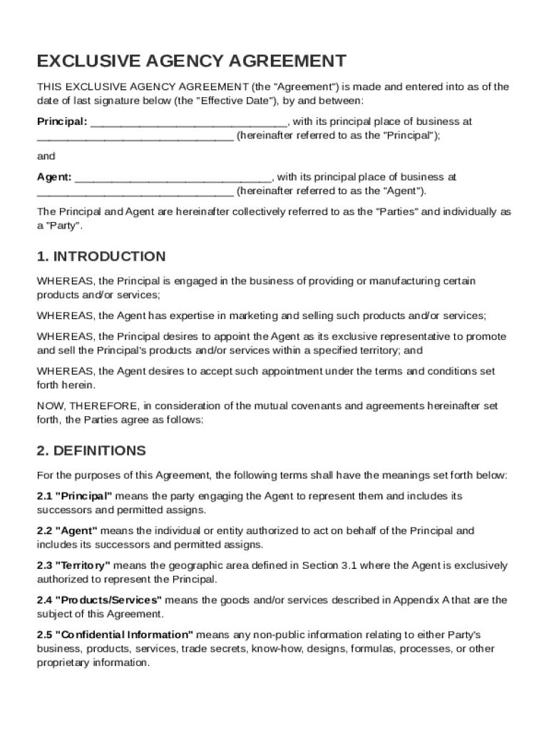 What is Exclusive Agency Agreement Template